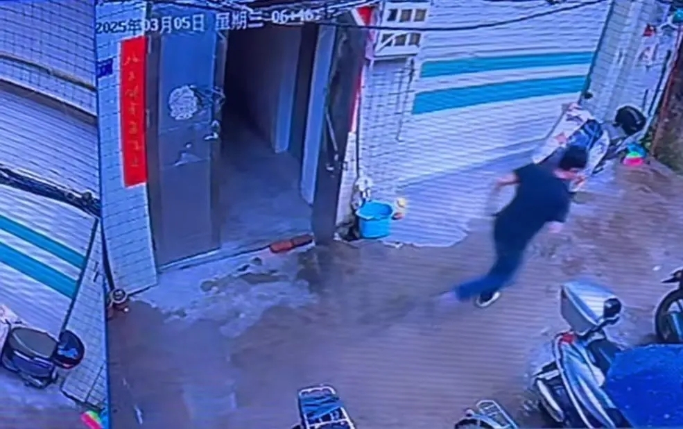 监控纪录下谢桂奔走救东说念主的画面。图片由潮州市文静办提供